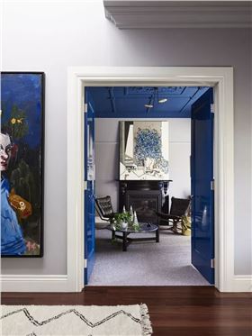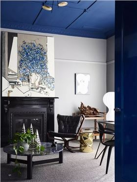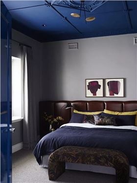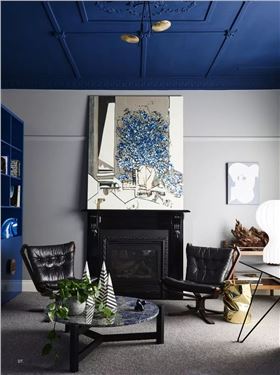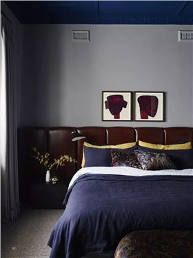 天花板设计师大胆地使用深蓝色并创意性地加上石膏雕花与边线。白色墙面如白云,蓝色天花如蓝天,蓝白地中海色的色调制造了海洋般的味道。