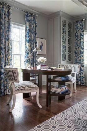 原本附着在瓷器上的精美绝伦的花纹,摇身一变,成为帘幕上动人心弦的蓝白色彩。瓷器是触感冰凉且质地坚硬的,而窗帘连同蓝白花纹本身则生出柔软温暖的感觉。这无疑是青花的另一种充满生命力的延续。