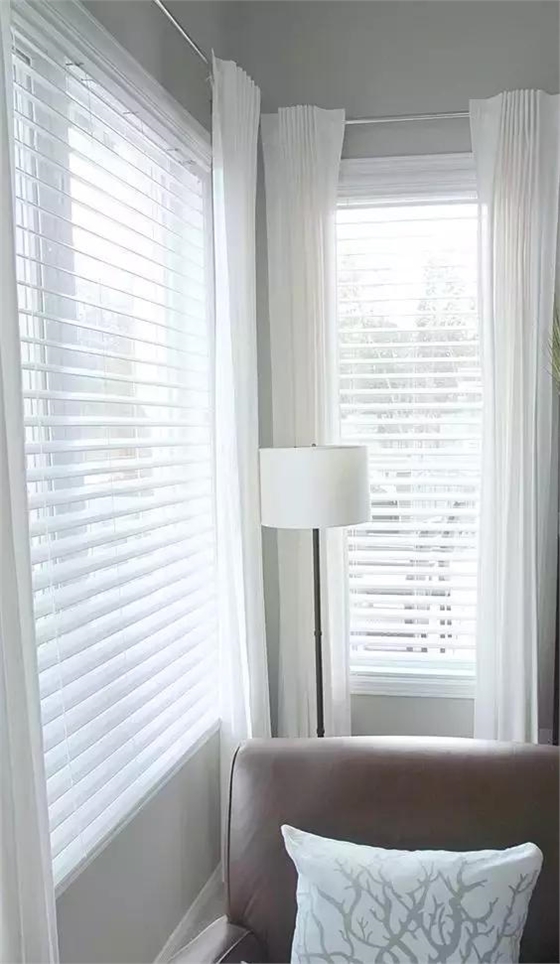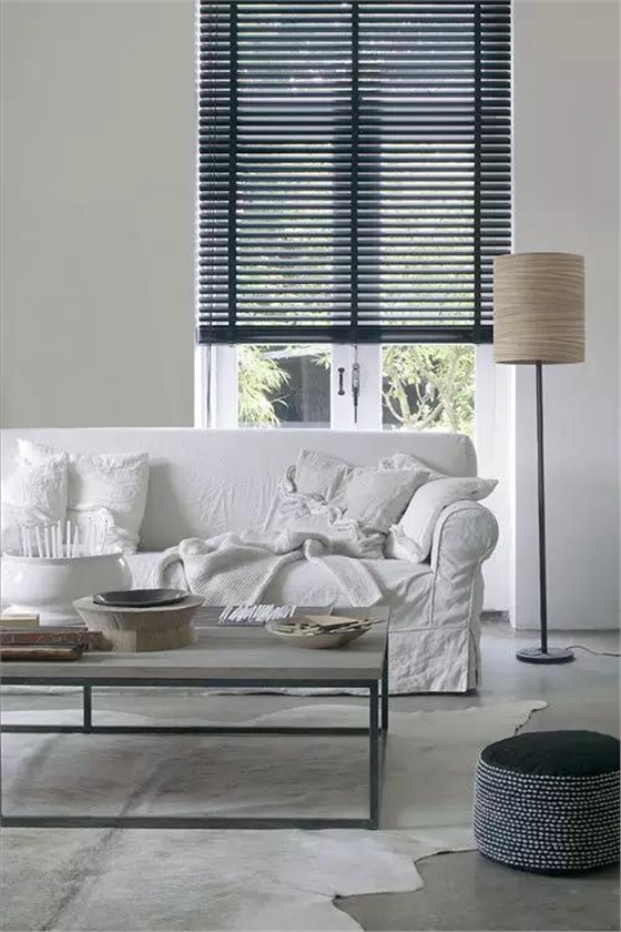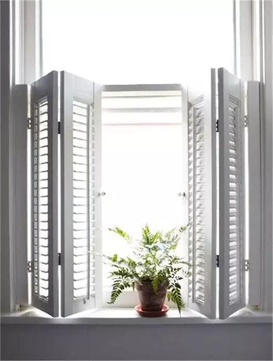 百叶窗是由许多薄片连接折叠而成,不仅具有通风、遮光和隔音的用途,而且还可以遮阳降温、装饰居室的作用,有固定式和活动式两种,颜色多样,清新可爱,比较适合简约、大方的现代风。